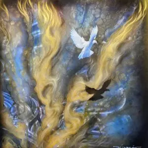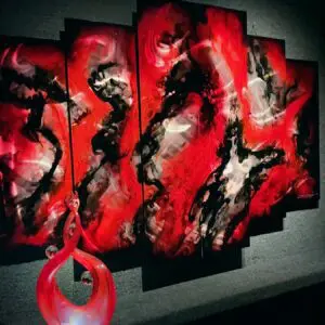 DeRubeis’ paintings bring to you the world of celestial abstraction that captures colored soaked light which appears to spring from De Rubeis’ art. With his soft lines, he weaves together forms of metal sculpture and paint to make his composition flow in harmony.